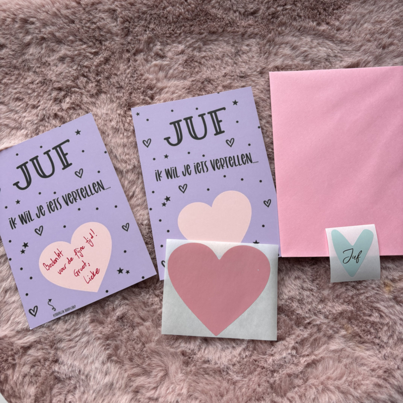 Een leuke manier om de juf iets te vertellen. Je kunt haar op deze manier feliciteren, dank je wel zeggen voor het fijne schooljaar, noem maar op. En het leuke is; je kunt zelf de boodschap vermelden.