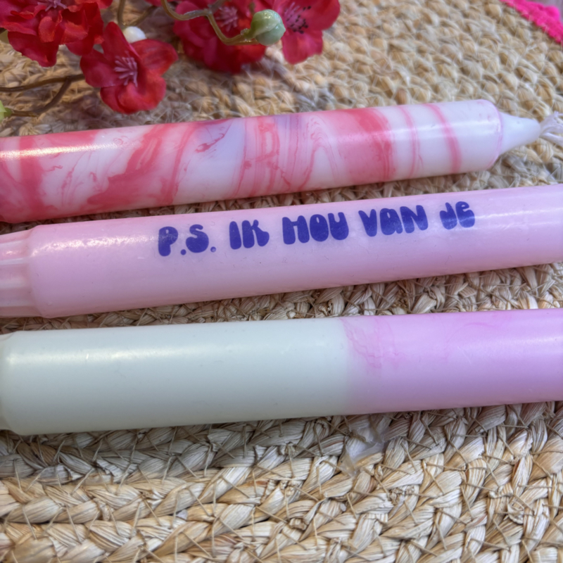 Kaars met tekst, set van 3, PS ik hou van je